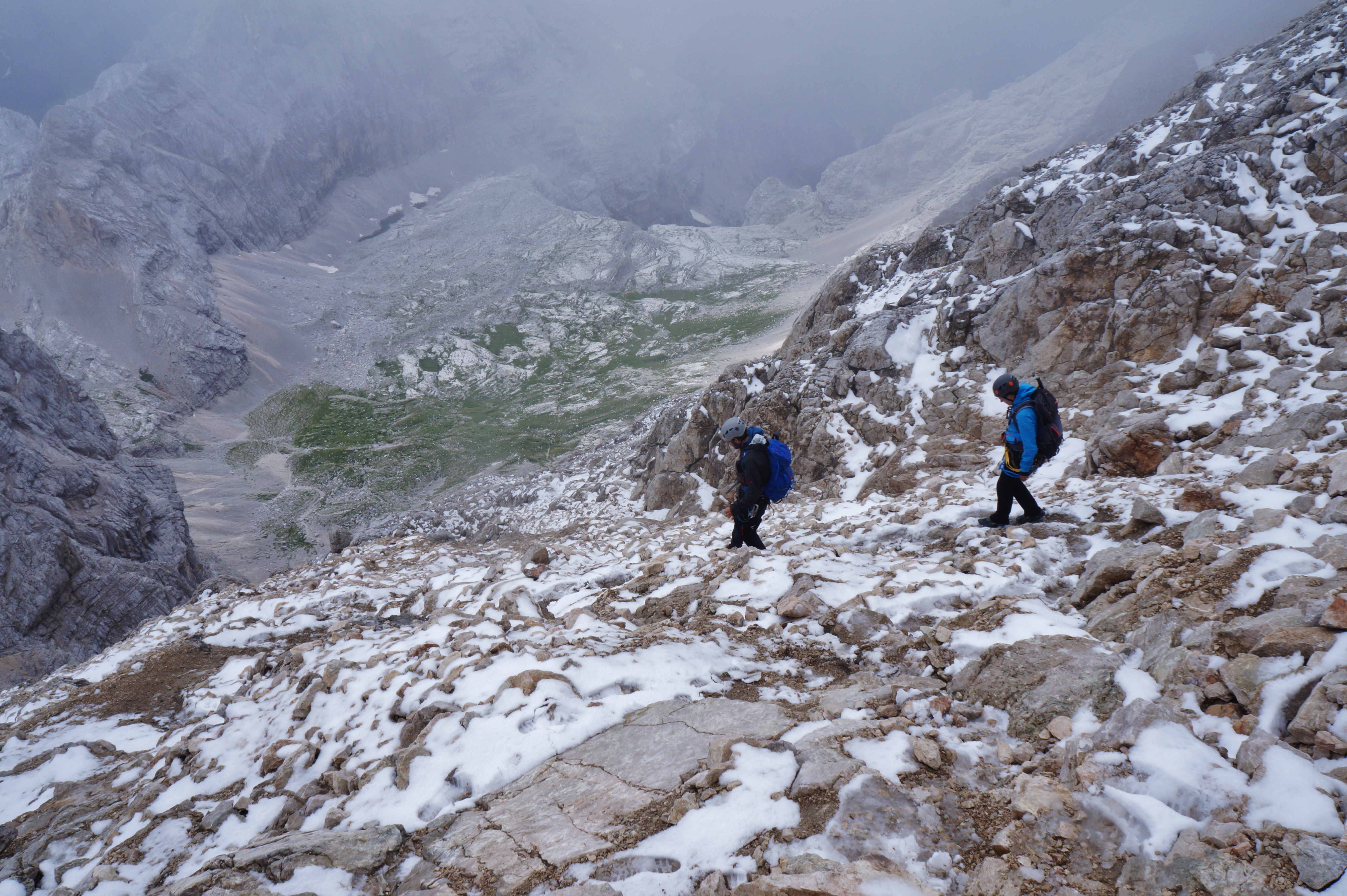 Gutxi egon ginen goitian. Lainoak eta haizeak sentsazio termikoa nahiko apala izatea eragiten zuten eta mantso-mantso beheiti abiatu ginen.